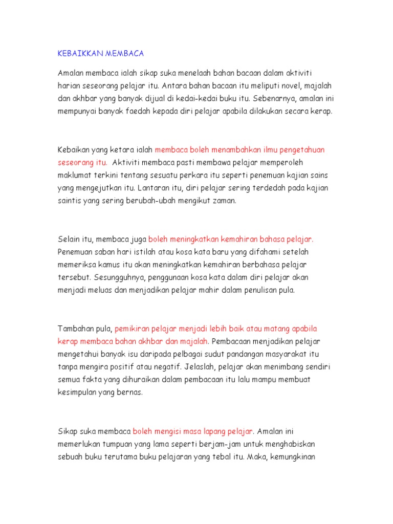 Karangan Pt3 Kebaikan Amalan Membaca