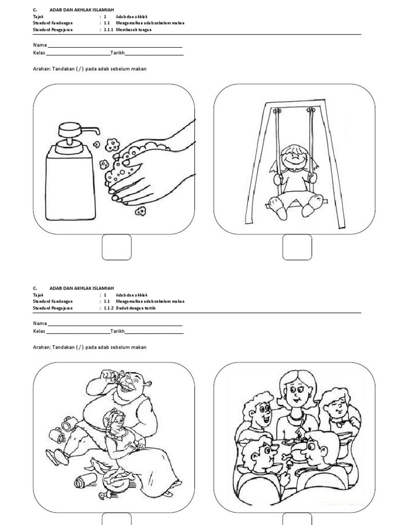 Lembaran Kerja Adab Dan Akhlak Pendidikan Islam Ppki Kssr Tahun 1