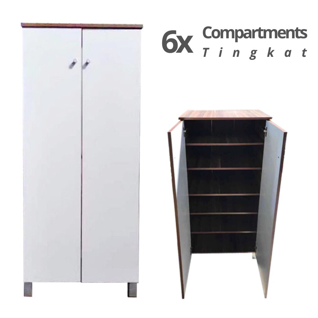 Ready Stocks 2 Door Wooden Shoe Storage Cabinet Rack Magnet Door